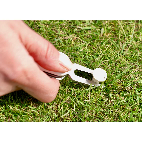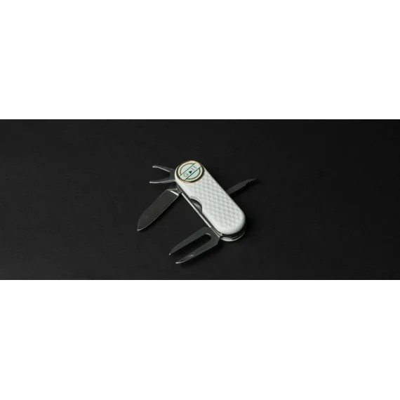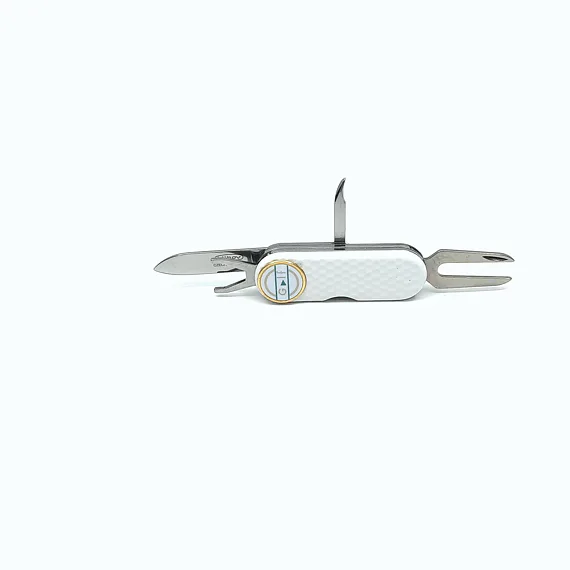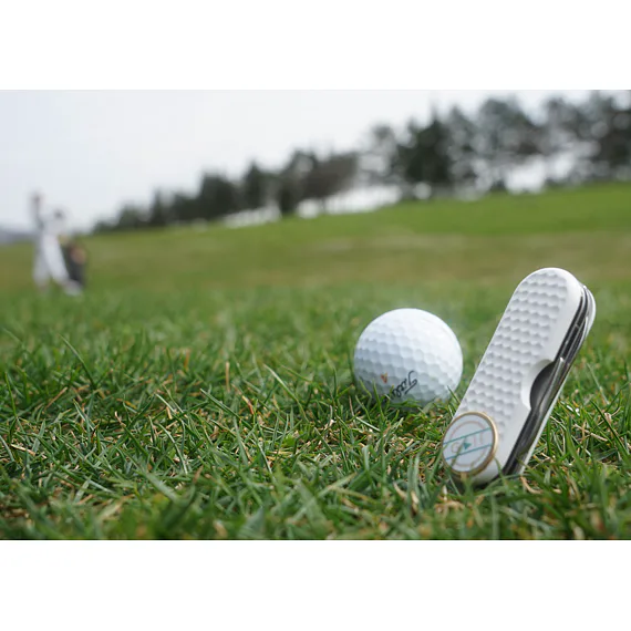 Profesionální golfový, kapesní nůž ergonomického tvaru v elegantním designu. Vyroben z vysoce kvalitních a odolných materiálů. I přes množství funkcí, kterými disponuje, váží pouhých 73g. Nástroje nože GOLF jsou vyrobeny z kvalitní nerezové oceli 420, která je extrémně odolná vůči korozi. Výhodou nože je jeho snadná ovladatelnost. Marker jde jednoduše vyjmout, vložit na green a opět připevnit na střenku nože. Vypichovátko Vám pomůže zachovat trávník v neporušeném stavu, klíč na spiky od bot zajišťuje profesionální komfort golfisty a hrot k vypíchnutí díry pro Teečka a odstranění nečistot je velmi praktickým pomocníkem, zejména v jarních a podzimních měsících. Čepel nože rozšiřuje možnosti využití i na mimo sportovní aktivity. Nůž Golf Vás podrží v těžkých chvílích na greenu i při pohodovém dni s přáteli.