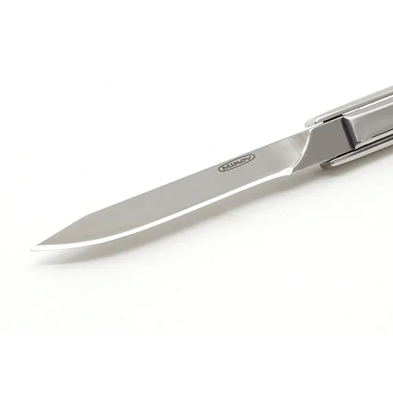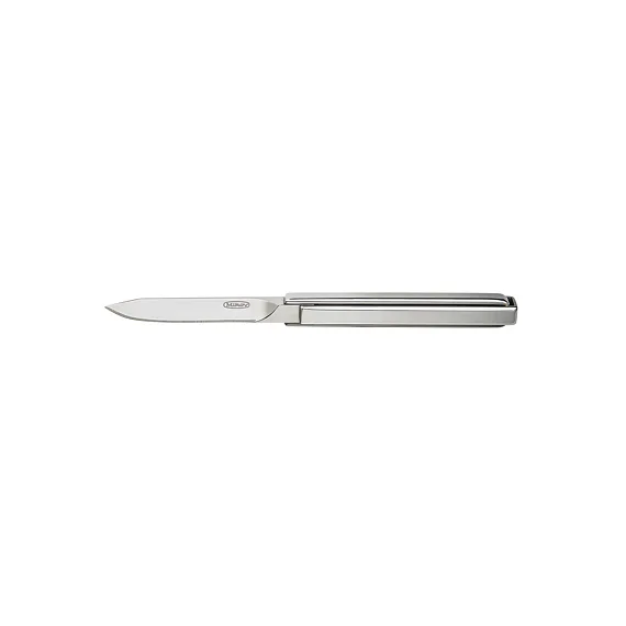 Unikátní řešení konstrukce nože působí na první pohled jako zajímavý hlavolam. Dvojitým překlopením nerezových střenek o 180 stupňů se nůž uvede do pohotovostního stavu. obráceným způsobem středošpičatou čepel skryjeme. Držadlo nože je na všech hranách sraženo pro lepší ergonomii a pohodlné uchopení nože.