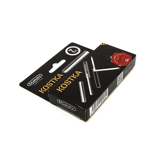 Kostka v sobě skrývá 2 mm silnou čepel o délce 62 mm a výšce 9 mm. Materiál čepele 440A, 55-57 HRc.