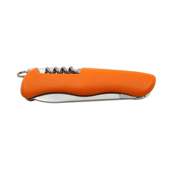 čepel, otvírač na láhve/šroubovák/drážka na odizolování vodičů, otvírač na konzervy, pilka, vývrtka, bodec, kroužek