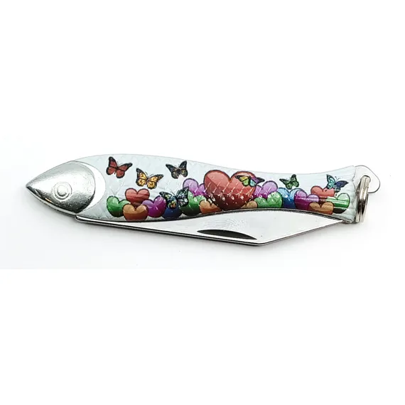 Celoplošně potištěná Rybička s tématem lásky patří mezi obrázkové nože, které vyrábíme jen v kusově omezených sériích. Je určena jako zajímavý dárek ke dni svatého Valentýna, ale svoje užití si najde i při dalších podobných příležitostech.