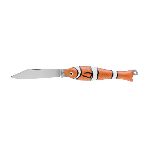 Střenky nože Rybička jsou vyrobeny ze zinkové slitiny a čepel nože je z kvalitní nerezové oceli typ 420 s tvrdostí 52-55 HRc.
