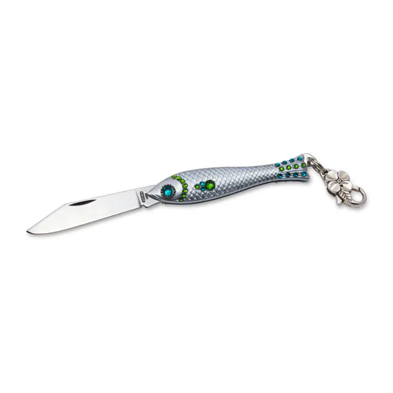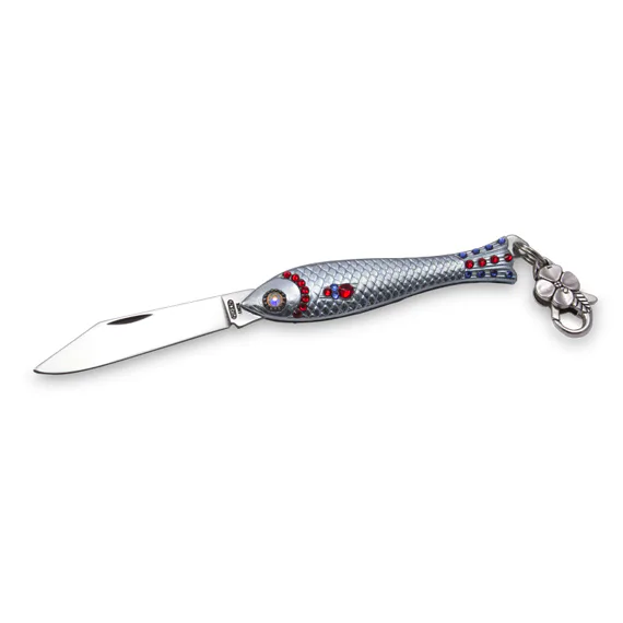Tato Rybička patří mezi kapesní zavírací nože, které jsou ručně zdobené kamínky Preciosa a proto patří do kategorie dekorativních předmětů.
