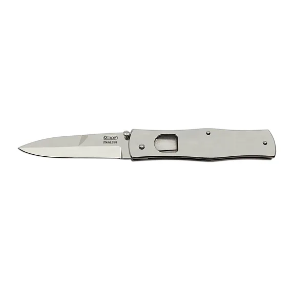 Čepel má univerzální bajonetový výbrus a na požadavek lze kolíček, který je umístěn v horní části u pojistky přidělat z levé nebo pravé strany. Umístěním kolíčku je nůž pravoruký nebo levoruký.