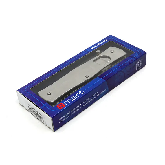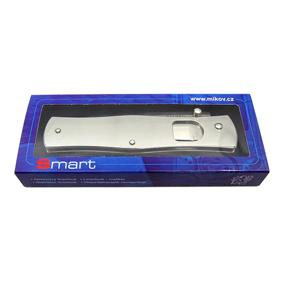 Celý SMART je vyráběn z kvalitní nerezové oceli 420 v úpravě vysoký lesk. Nůž je vybaven speciálně uloženou pojistkou linerlock, kolíčkem pro snadné otevření jednou rukou a klipem za opasek.