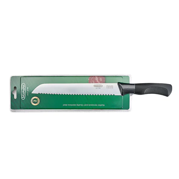 Kuchyňský nůž na pečivo, dokáže rozkrájet a nakrájet všechny druhy pečiva, nebo lehce zmrzlé maso a uzeninu. Nůž má čepel 200 mm dlouhou, dolnošpičatého tvaru se spodním výbrusem pilových zubů a je zhotovená z kvalitní nerezové oceli 420 o tvrdosti 53-55 HRc.