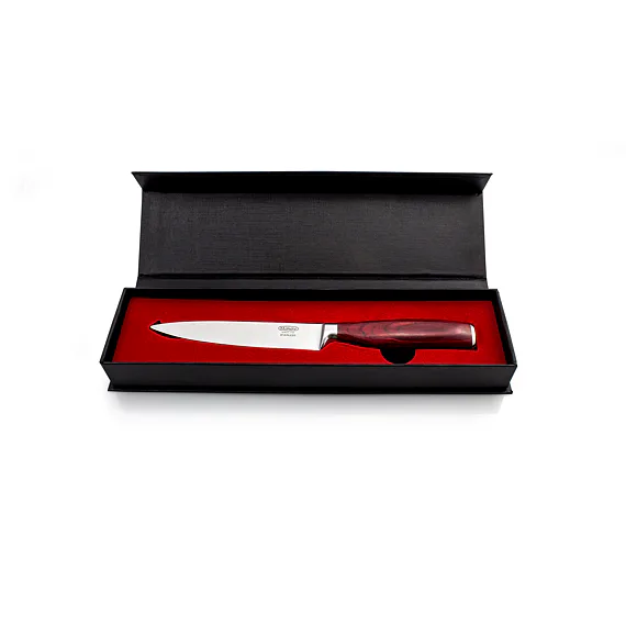 Kvalitní čepel s logem Mikov je vyrobena z martenzitické korozivzdorné oceli DIN 1.4116 (dovoz SRN) o tvrdosti 55 HRc zasazena do dřevěného držadla. Držadlo je dokonale ergonomické a je našimi konstruktéry a designéry navrženo tak, aby s nožem umožnilo pohodlnou práci. Díky preciznímu zpracování držadlo s čepelí dokonale lícuje, proto nedává žádný prostor nečistotám a choroboplodným bakteriím. Čepel je opatřena kováním chránícím prsty při krájení. Používání kuchyňských nožů RUBY je při dodržení základních pravidel manipulace s ostrými předměty a hygieny komfortní a bezpečné. Nůž 403-ND-13/RUBY UNIVERZALNÍ je vhodný pro každodenní používání a odolný proti korozi.
