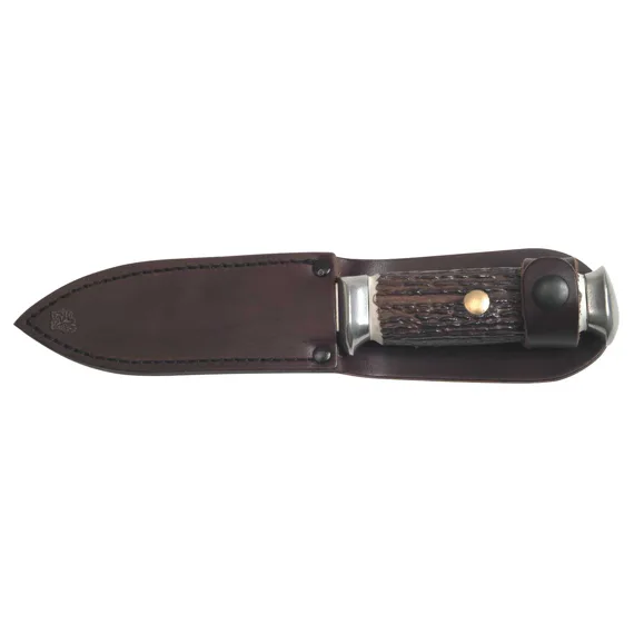 Držalo této lovecké dýky je velmi kvalitní napodobeninou jeleního parohu. Přední a zadní kování je vyrobeno z nerezové oceli. V zadním kování je otvor sloužící pro navlečení provázku, kůže nebo jiného závěsníku.
