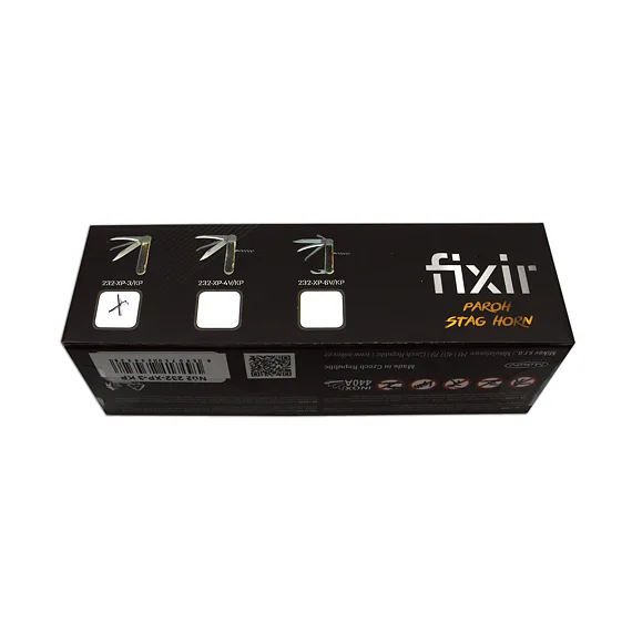 Lovecký nůž FIXIR je vybaven čepelí z velmi kvalitní nerezové oceli 440A o tvrdosti 54-57 HRc. Čepel loveckého nože FIXIR má kónický výbrus, což umožňuje nejen lepší řezivost, ale i údržbu. Tento typ loveckého nože FIXIR je také vybaven kvalitní pilkou s dvěma řadami zubů a páráčkem. Lovecký nůž FIXIR je vybaven hřbetní pojistkou backlock, pro větší bezpečnost při práci s nožem. Střenky loveckého zavíracího nože FIXIR jsou vyrobeny z pravého jeleního parohu. Lovecký nůž FIXIR je dodáván včetně koženého pouzdra s logem Mikov a papírové krabičky.
