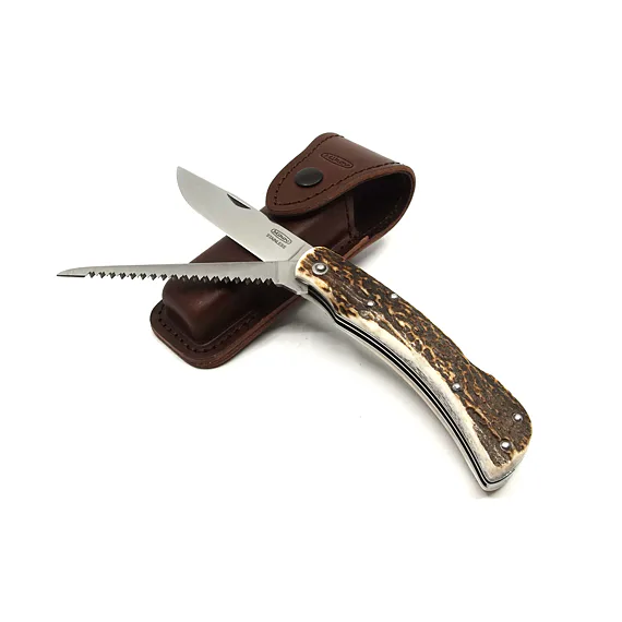 Lovecký zavírací nůž HUBERT 2dílný s pilkou - střenka paroh 245-XP-2