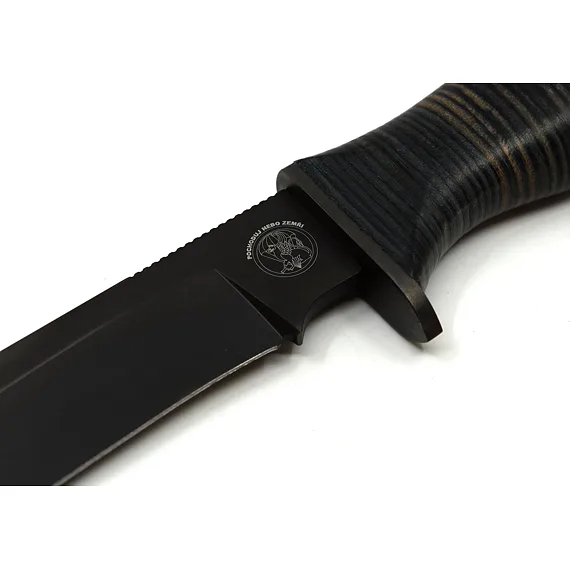 Nůž má čepel vyrobenou z oceli Bőhler N690, která patří mezi významné nožířské oceli s velkou řezivostí a odolností proti poškození i korozi. Garantovaná tvrdost je 58-60 HRc. Na čepeli je text POCHODUJ NEBO ZEMŘI