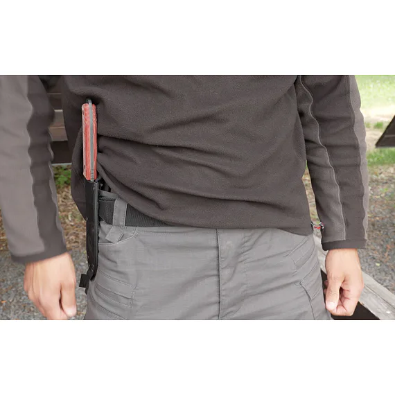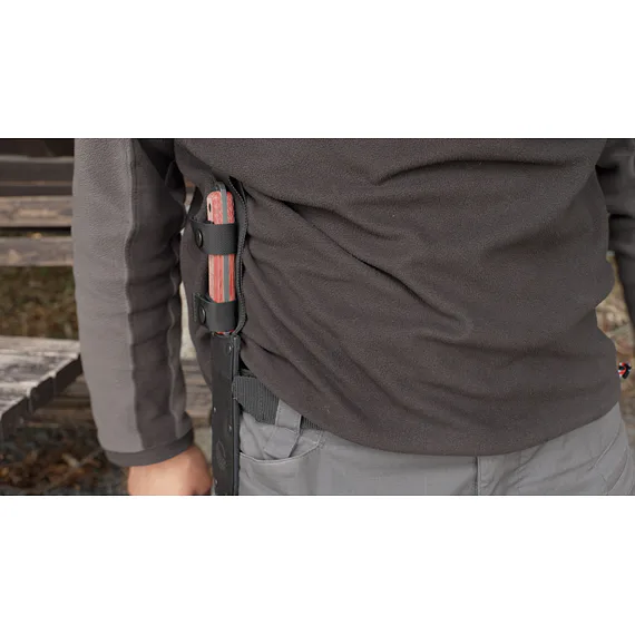 Velmi lehké a skladné pouzdro je vyrobeno z laminované cordury s plastovou vložkou, která aretuje nůž v pochvě. Rukojeť nože je fixována k závěsnému popruhu dvěma upínacími pásky s druky. Celý povrch pouzdra je vyroben ze stejného materiálu, který se používá na výrobu výstrojních součástek armády