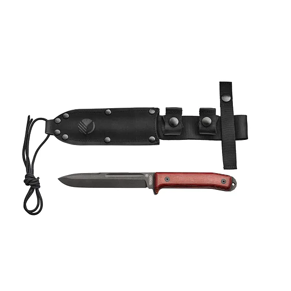 REPETITOR je integrální nůž s červenými příložkami z materiálu Micarta.