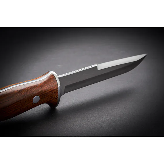 Čepel nože UTON je vyrobena z kvalitní nerezové oceli typ 420 s tvrdostí 52-55 HRc a má dutý výbrus a je opatřena leptem loga Mikov.