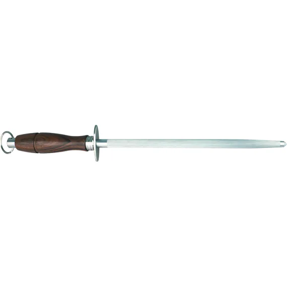 Kvalitní ocílka je vyrobena z materiálu 19421 s tvrdochromovou úpravou pro zlepšení vlastností ocílky s tvrdostí 56-58 HRc. Ocílka s průřezem a délkou čepele 25 cm je vhodná pro broušení běžných kuchyňských a řeznických nožů.