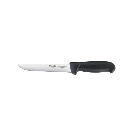 Kvalitní čepel s logem Mikov je vyrobena z kvalitní nerezové oceli 1.4116 (440A) o tvrdosti 55 – 58 HRc s vysokou řezivostí a otěruvzdorností osvědčenou pro výrobu řeznických a kuchyňských nožů. Je zasazena do plastové rukojeti, jejíž ergonomie umožňuje bezpečný a pohodlný úchop všemi prsty.