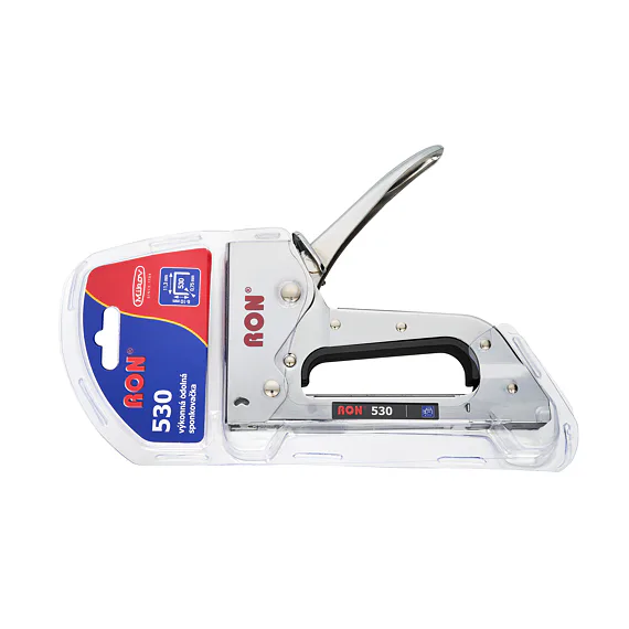 Výkoná ruční sponkovačka na sponky typu 530 do délky 10 mm. Robustní kovová sponkovačka s odolným ergonomickým tělem z ušlechtilé oceli. Robustní, pohodlné a zároveň lehké nářadí. Ideální pro přibíjení látky, čalounění, popruhů, lišt, štítků, rámování, drobné domácí práce…