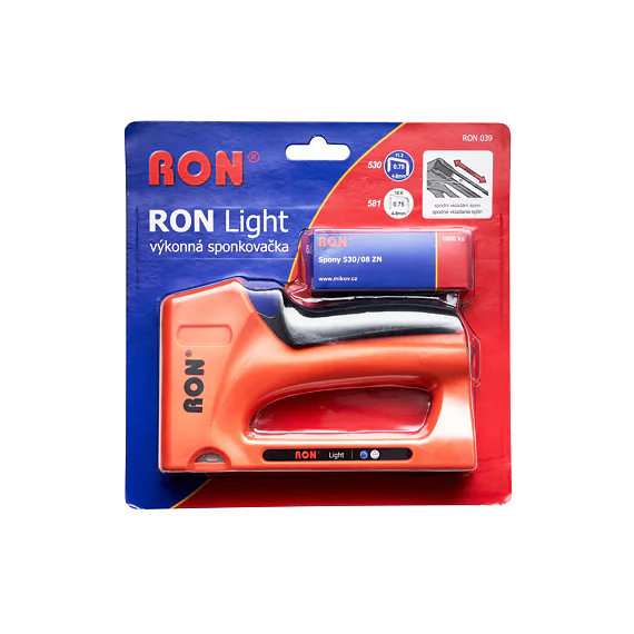 Výkoná ruční sponkovačka na sponky typu 530 a 581 do délky 8 mm. Kombinovaná odlehčená sponkovačka s vyváženým ergonomickým tělem z polymerů, robustní, pohodlné a zároveň lehké nářadí. Ideální pro přibíjení látky, čalounění, popruhů, lišt, štítků, rámování, drobné domácí práce…