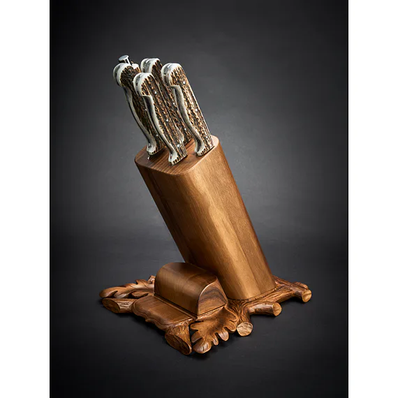 Sada 4 nožů se skládá z nože kuchařského, na pečivo, porcovacího a špalkového. Nože jsou vyrobeny z kvalitní nerezové oceli. Střenky nožů jsou vyrobeny z pravého paroží, které dodává noži luxusní vzhled a vysokou užitnou hodnotu.