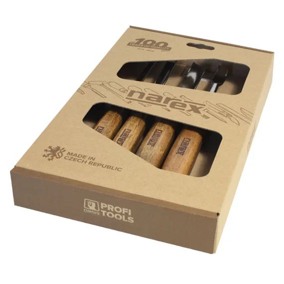 Sada řezbářských dlát je dodávána v dřevěné kazetě.