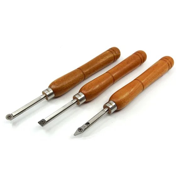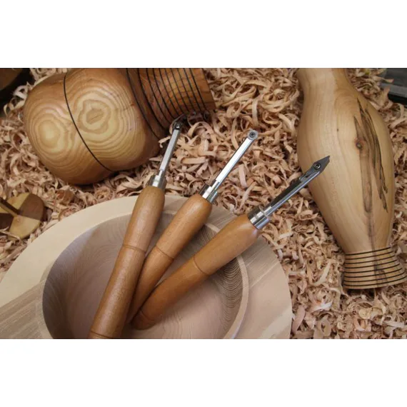 Čepele jsou na spodní straně obrobeny naplocho, aby poskytovaly referenční plochu, která pomáhá udržovat kontrolu a stabilitu během procesu soustružení.