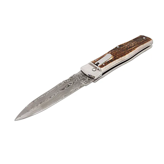 Vyhazovací zavírací nůž PREDATOR 241-damašek střenka přírodní