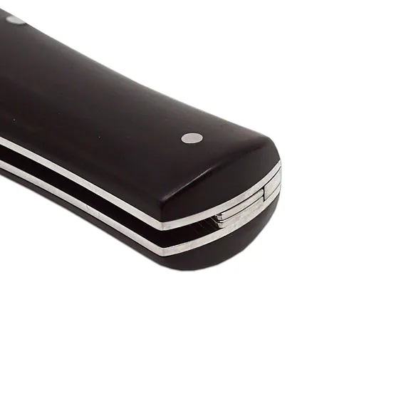 Střenka je z kvalitního exotického dřeva PALISANDER SANTOS. Tento přírodní materiál je nakupován pouze v souvislosti s platnou legislativou a v zájmu ochrany přírody. Svým tvarem zaručuje nejen příjemný a pevný úchop, ale zároveň brání sklouznutí ruky a poranění.