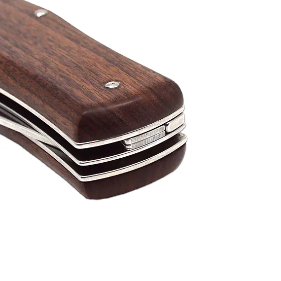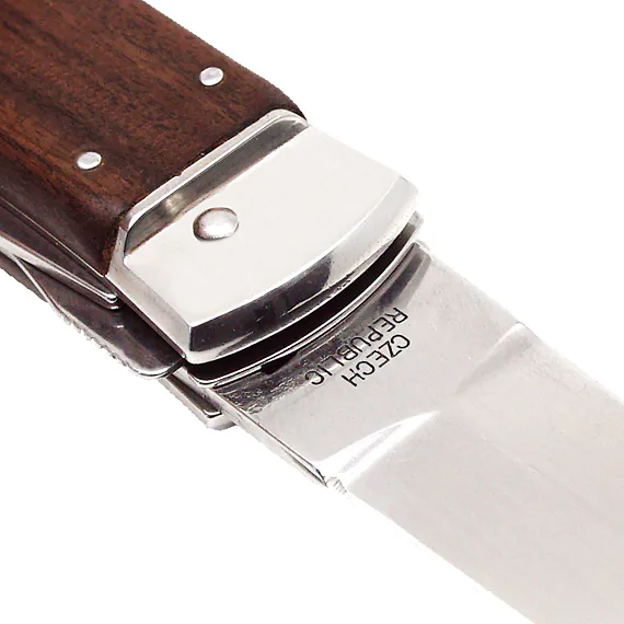 Střenka nože je vyrobena z kvalitního exotického dřeva PALISANDER SANTOS. Svým tvarem zaručuje nejen příjemný a pevný úchop, ale zároveň brání sklouznutí ruky a poranění.