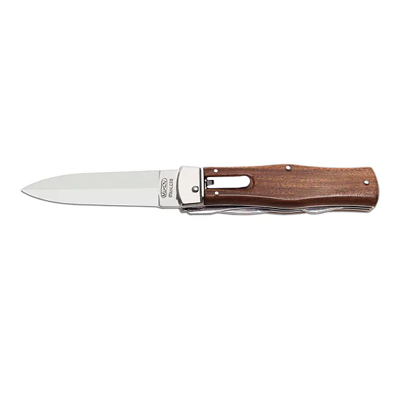 Střenka nože je vyrobena z kvalitního exotického dřeva PALISANDER SANTOS. Svým tvarem zaručuje nejen příjemný a pevný úchop, ale zároveň brání sklouznutí ruky a poranění.