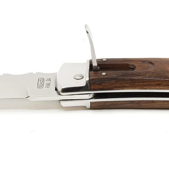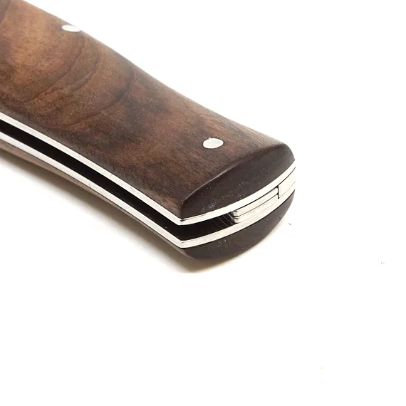 Střenka je z kvalitního exotického dřeva PALISANDER SANTOS. Tento přírodní materiál je nakupován pouze v souvislosti s platnou legislativou a v zájmu ochrany přírody. Svým tvarem zaručuje nejen příjemný a pevný úchop, ale zároveň brání sklouznutí ruky a poranění.