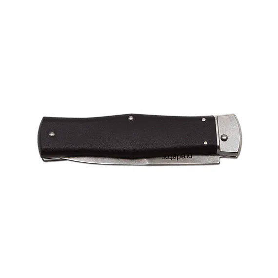 Střenka nože je vyrobena z černého, odolného a ergonomicky tvarovaného plastu, jež ve spojení s ostatními díly dává vyniknout nádhernému a propracovanému tvaru nože s názvem PREDATOR STONEWASH.