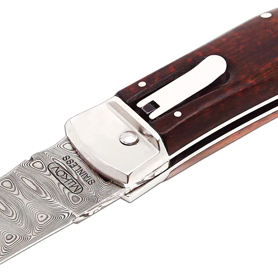 Vyhazovací zavírací nůž PREDATOR WILDCAT – damašek, střenka dřevo snake 241-DD-1