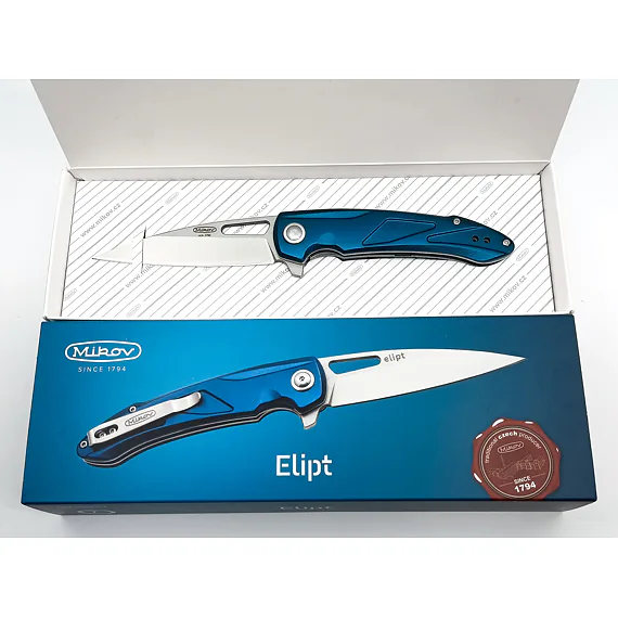 ELIPT je vybaven dolnošpičatou čepelí se spodním výbrusem z oceli D2 v provedení stonewash. Tato ocel má vyšší obsah chromu a uhlíku a tím dává čepeli vysokou odolnost proti opotřebení. Její tvrdost je 63 HRc. Čepel je doplněna flipperem pro rychlé a bezpečné otevírání jednou rukou. Na její horní hraně je odlehčovací otvor, který zjednodušuje obouručné otevírání například v rukavicích. Díky tomu je nůž stejně použitelný pro praváky i leváky. Čepel je uložena na kuličkových ložiscích, která zaručují plynulý chod při současném silném utažení střenek. Nevzniká tak nepotřebná vůle a zároveň není narušen plynulý chod otevírání.